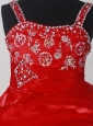 The bodice features the perfect beaded straps. The beautiful ruffles on the ball gown completes the look. Your little girl won't miss it.