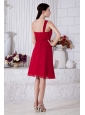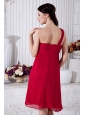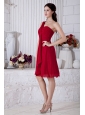 Home >  Bridesmaid Dresses >  Simple Bridesmaid Dresses > Wine Red Empire One Shoulder Bridesmaid Dress Mini-length Chiffon Ruch