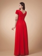 Home >  Prom Dresses >  Best Prom Dresses > Wine Red Empire Prom Dress V-neck Short Sleeves Floor-length Chiffon With Ruch