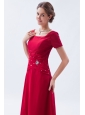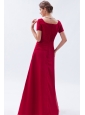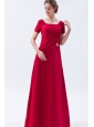 Wine Red Empire Scoop Prom Dress Satin Beading Floor-length