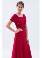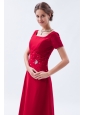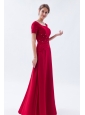 Home >  Prom Dresses >  Modest Prom Dresses > Wine Red Empire Scoop Prom Dress Satin Beading Floor-length