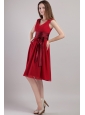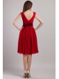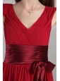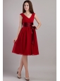 Wine Red Empire V-neck Knee-length Chiffon Sash Bridesmaid Dress