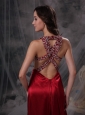 Wine Red Empire V-neck Prom Dress Beading and Ruch Taffeta