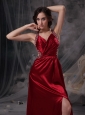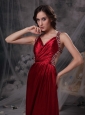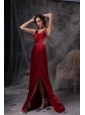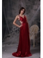 Home >  Prom Dresses >  Sexy Prom Dresses > Wine Red Empire V-neck Prom Dress Beading and Ruch Taffeta