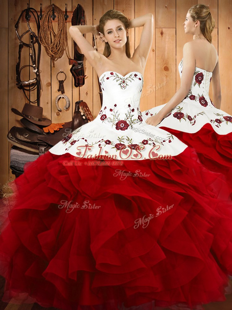 Wine Red Halter Top Lace Up Embroidery and Ruffles Vestidos de Quinceanera Sleeveless