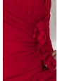 Wine Red Junior Prom Dress Hand Made Flower Column / Sheath Straplss Mini-length Chiffon