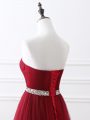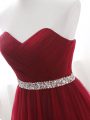 Home >  Prom Dresses >  Christmas Party Dresses > Wine Red Lace Up Party Dress Beading Sleeveless Brush Train