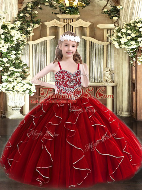 Home >  Special Occasion Dresses >  Beautiful Kids Pageant Dresses > Wine Red Lace Up Straps Beading and Ruffles High School Pageant Dress Organza Sleeveless