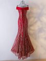 Wine Red Mermaid Chiffon Off The Shoulder Sleeveless Beading Floor Length Lace Up Evening Dress