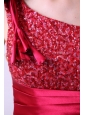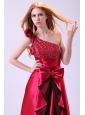 Home >  Prom Dresses >  Junior Prom Dresses > Wine Red One Shoulder Sequins and Bow Ankkle-length Prom Dress