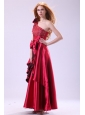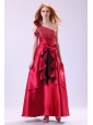 Wine Red One Shoulder Sequins and Bow Ankkle-length Prom Dress