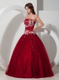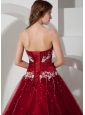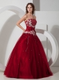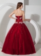 Wine Red Quinceanera Dress Strapless Satin and Tulle Appliques and Beading