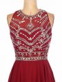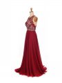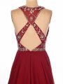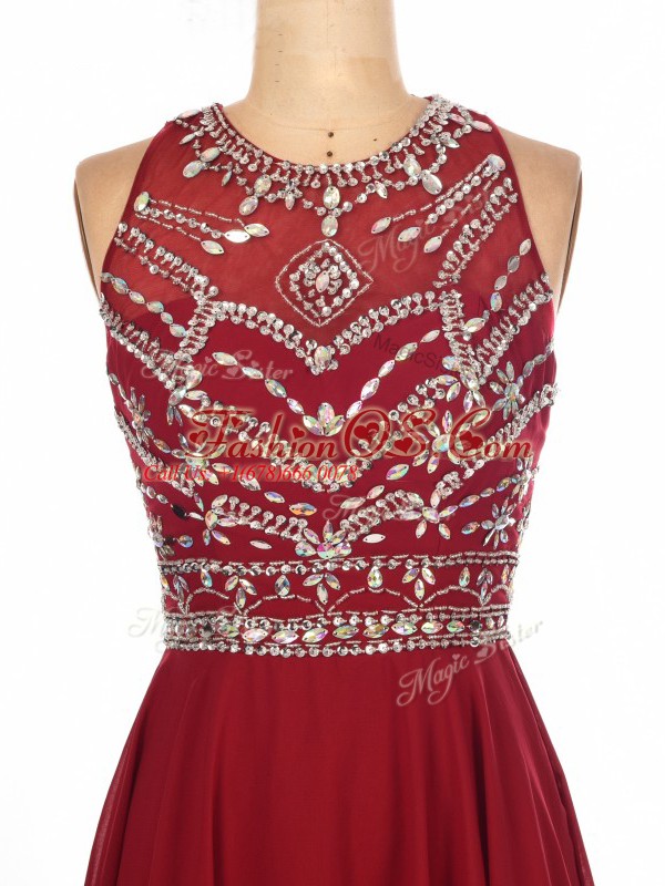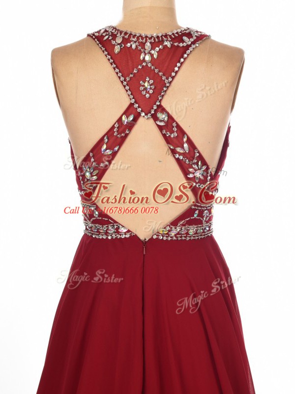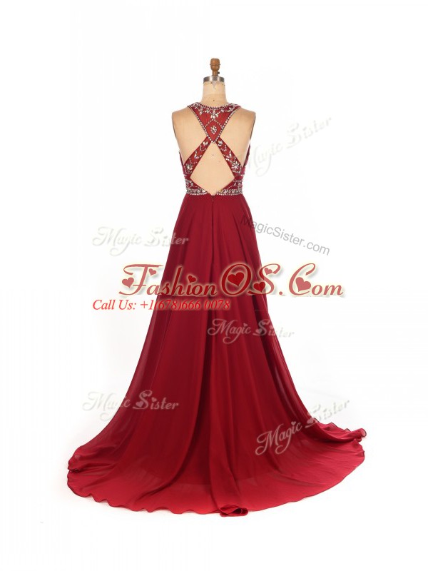 Wine Red Scoop Criss Cross Beading Evening Dress Brush Train Sleeveless