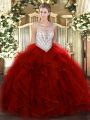 Wine Red Scoop Neckline Beading and Ruffles Quinceanera Dresses Sleeveless Zipper