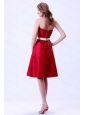 Do you want to experience the feeling of being the spotlight in the wedding? This wine red bridesmaid dress will make your dream come true. It features a strapless bodice with a sweetheart neckline and lovely ruches throughout. The white waistband in the middle contours your curve. The knee-length skirt and the empire style add the charm. A stunning dress you can't miss.