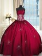 Wine Red Sleeveless Beading and Appliques and Ruching Floor Length 15 Quinceanera Dress
