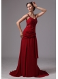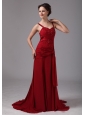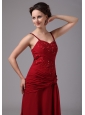 Wine Red Spaghetti Straps Mother Of The Bride Dress With Appliques and Beading Brush Train For Custom Made In Cleveland Georgia