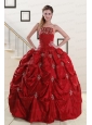 Wine Red Strapless 2015 Quinceanera Dresses with Appliques