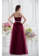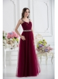 Home >  Prom Dresses >  Modest Prom Dresses > Wine Red Straps Empire Ruching and Beading Prom Dress with Belt