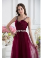 Wine Red Straps Empire Ruching and Beading Prom Dress with Belt