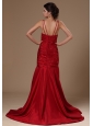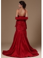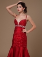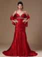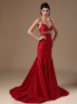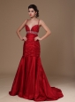 Wine Red Taffeta Mermaid Sweep Hottest Beaded Prom Celebrity Gowns For Custom Made
