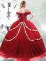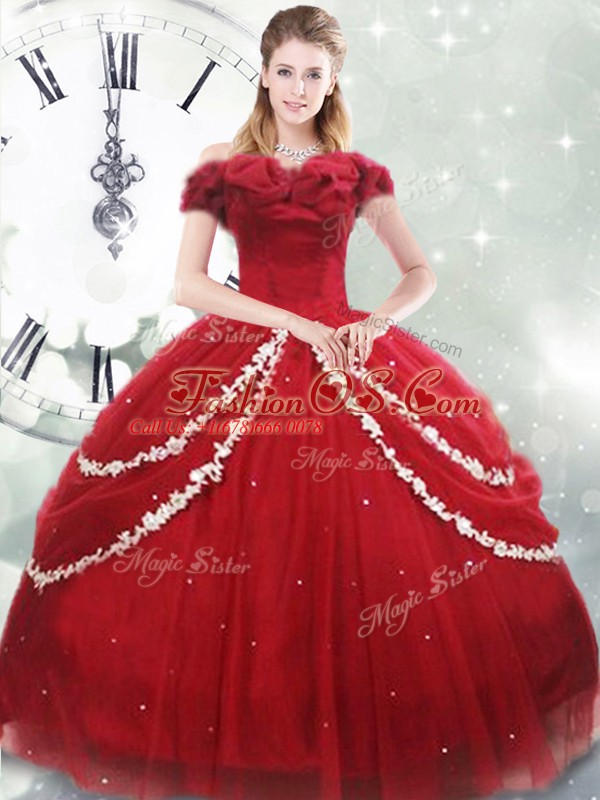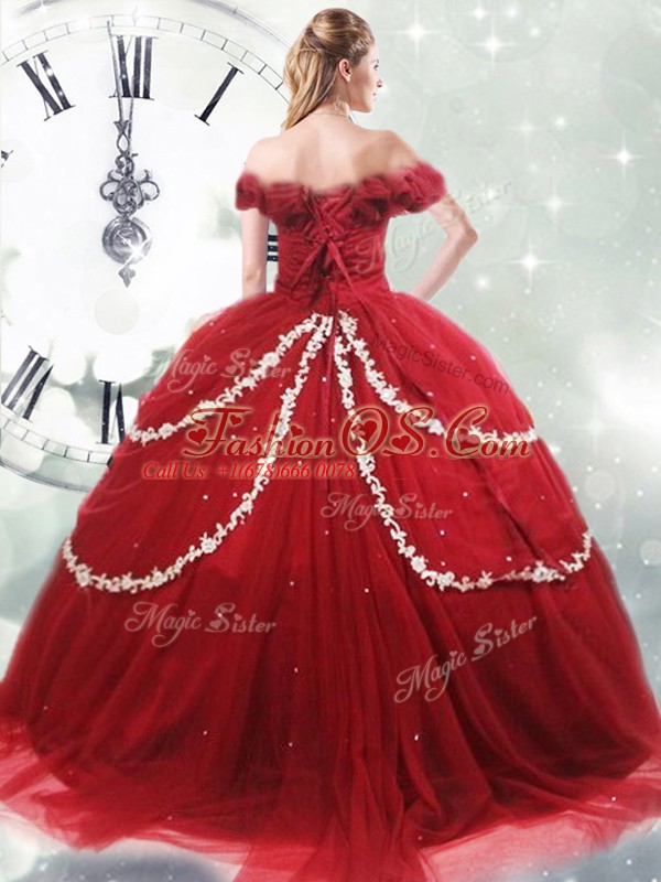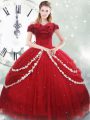 Wine Red Tulle Lace Up Sweet 16 Dresses Sleeveless Brush Train Appliques and Pick Ups
