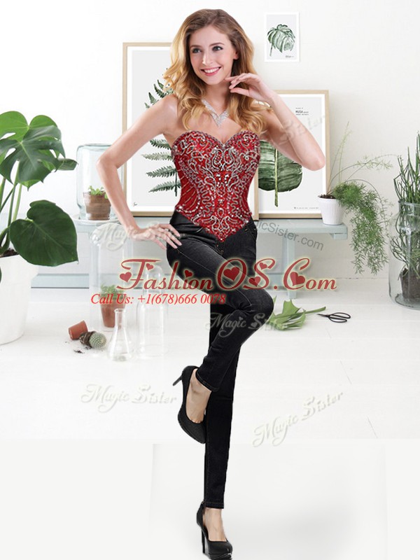 Wine Red Two Pieces Sweetheart Sleeveless Organza Floor Length Lace Up Beading and Appliques and Pick Ups Sweet 16 Dresses