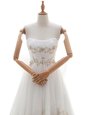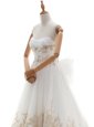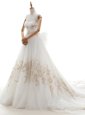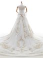 With Train Lace Up Bridal Gown White and In for Wedding Party with Appliques and Bowknot Chapel Train