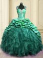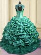With Train Lace Up Quinceanera Gowns Turquoise and In for Military Ball and Sweet 16 and Quinceanera with Beading and Ruffles and Pick Ups Brush Train