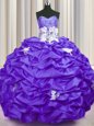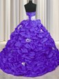 Home >  Quinceanera Dresses >  Unique Quinceanera Dresses > With Train Purple Quince Ball Gowns Taffeta Brush Train Sleeveless Appliques and Sequins and Pick Ups