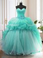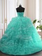 With Train Turquoise Sweet 16 Quinceanera Dress Organza Sweep Train Sleeveless Beading and Ruffles