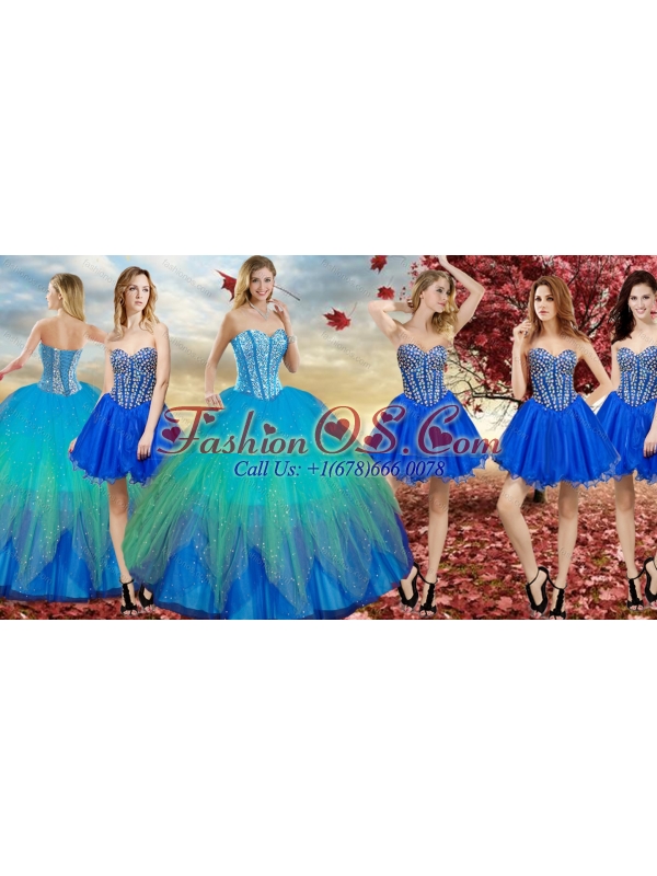 Wonderfu Rainbow Quinceanera Dress and New Arrivals Blue Dama Dress with Beading