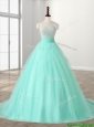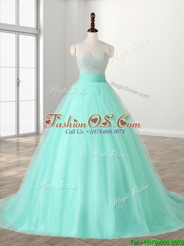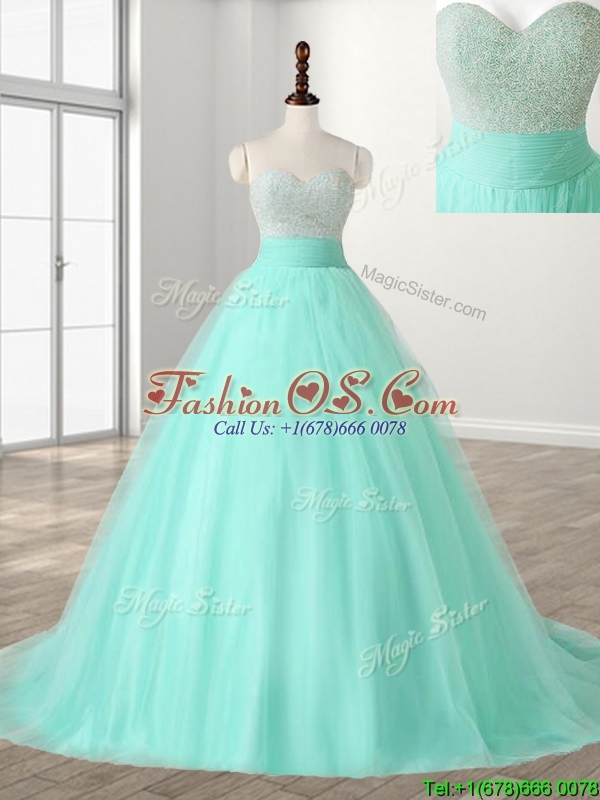 Wonderful A Line Beading Sweet 16 Dress with Brush Train