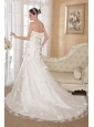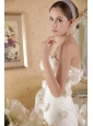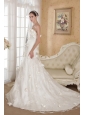 Home >  Wedding Dresses >  Affordable Wedding Dresses > Wonderful A-line Strapless Court Train Lace and Taffeta Hand Made Flowers Wedding Dress