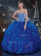 Wonderful Ball Gown Princesita with Quinceanera Dresses with Beading and Ruffles in Blue for Fall