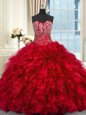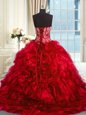 Wonderful Ball Gowns Sleeveless Red Sweet 16 Quinceanera Dress Brush Train Lace Up