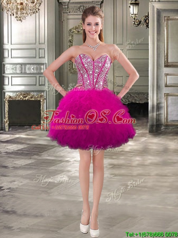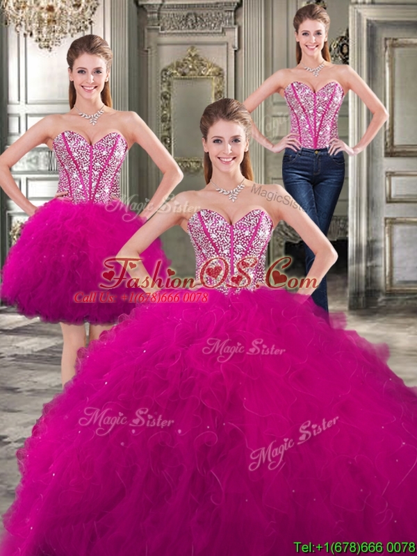Wonderful Beaded and Ruffled Detachable Quinceanera Dresses in Fuchsia