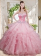 Wonderful Beaded and Ruffled Layer Big Puffy Quinceanera Dress in Baby Pink