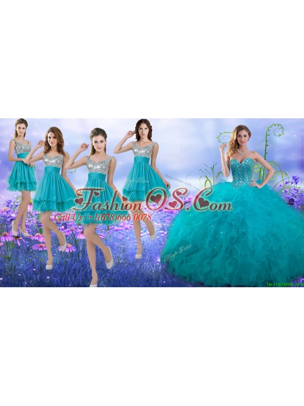 Home >  Quinceanera Dresses >  Quinceaneara Package > Wonderful Beaded and Ruffled Quinceanera Dress and Beautiful Straps Sequined Dama Dresses
