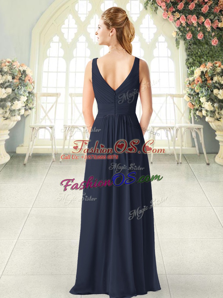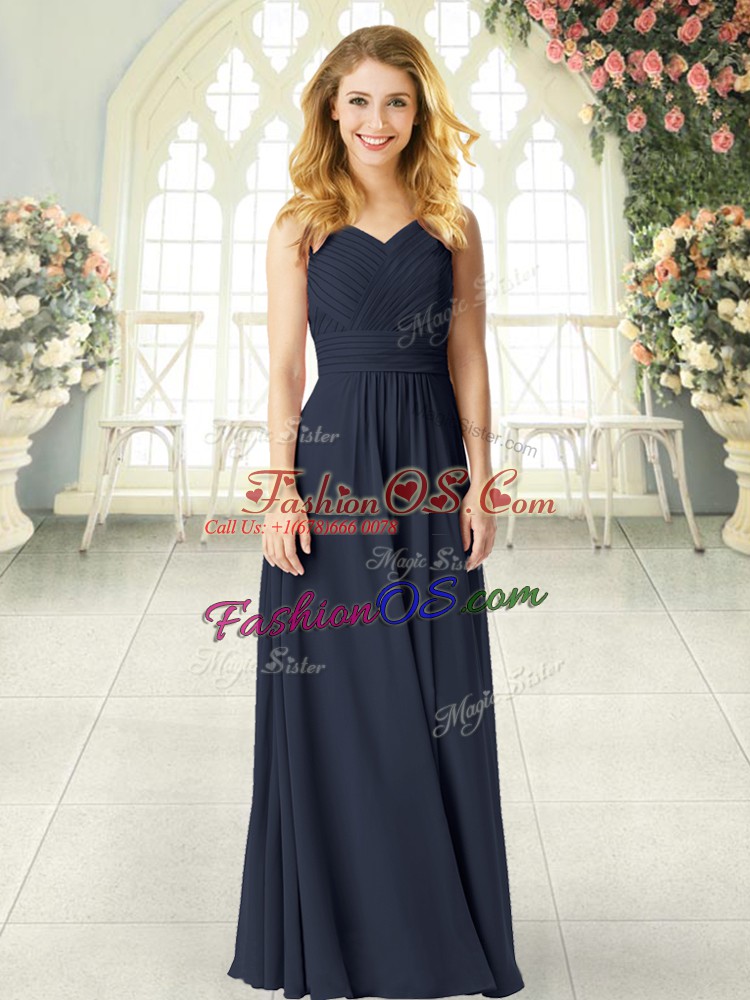 Wonderful Black Empire Ruching Prom Party Dress Zipper Chiffon Sleeveless Floor Length
