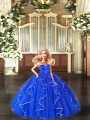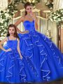 Wonderful Blue Ball Gowns Beading and Ruffles Sweet 16 Dresses Lace Up Tulle Sleeveless Floor Length