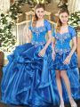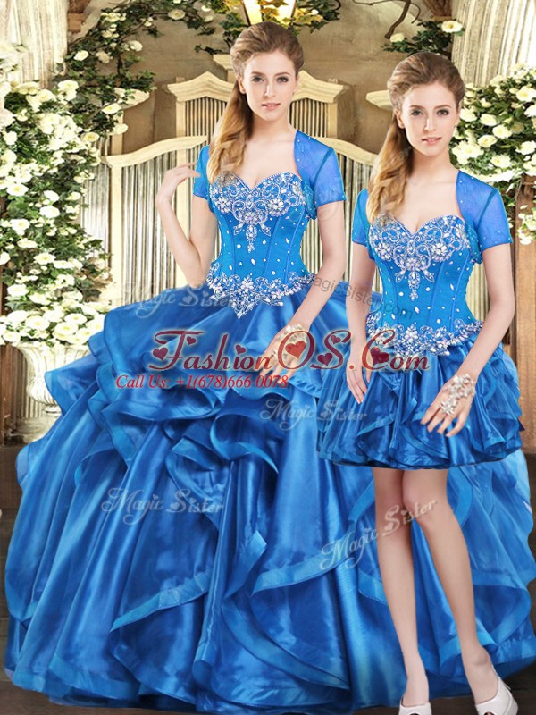 Home >  Quinceanera Dresses >  Detachable Quinceanera Skirts > Wonderful Blue Sleeveless Organza Lace Up Quince Ball Gowns for Military Ball and Sweet 16 and Quinceanera