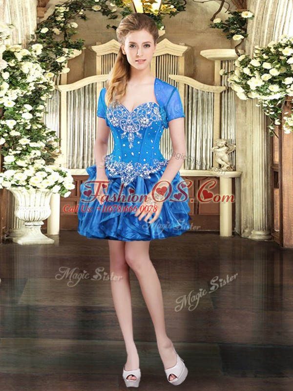 Wonderful Blue Sleeveless Organza Lace Up Quince Ball Gowns for Military Ball and Sweet 16 and Quinceanera