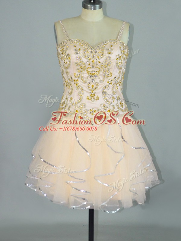 Home >  Special Occasion Dresses >  Cocktail Dresses > Wonderful Champagne Tulle Lace Up Cocktail Dresses Sleeveless Mini Length Beading and Ruffles