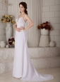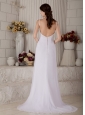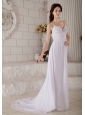 Home >  Wedding Dresses >  Beach Wedding Dresses > Wonderful Column Spaghetti Beach Wedding Dress Straps Brush Train Chiffon Beading
