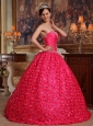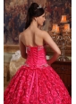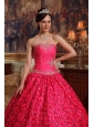 Wonderful Coral Red Quinceanera Dress Strapless Fabric With Rolling Flowers Appliques Ball Gown