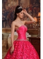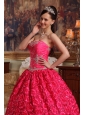 This ball gown is everything that you have ever dreamed a quinceanera dress could be! Strapless dresses are one of the sexier styles on the market today. They show just enough skin to be classy without being too revealing. It features a pretty strapless bodice embellished with beading and rhinestones. The focal point is, no doubt, the fabulous A-line skirt. It is made from densely gathered rose pattern with sequins in between which create a fantastic and irresdecent effect. A lace up corset style closure in the back secures the dress in place.