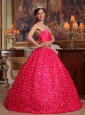 Home >  Quinceanera Dresses >  Unique Quinceanera Dresses > Wonderful Coral Red Quinceanera Dress Strapless Fabric With Rolling Flowers Appliques Ball Gown