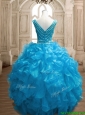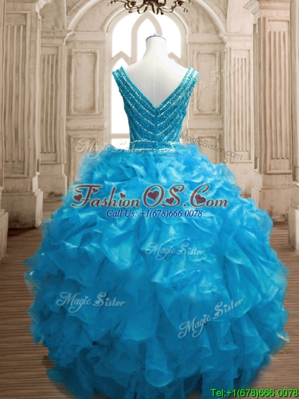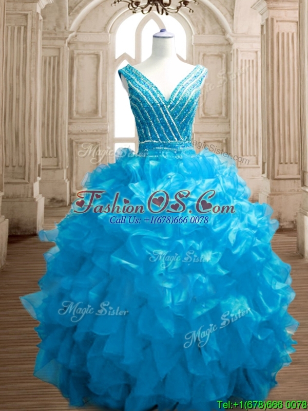 Wonderful Deep V Neckline Beading and Ruffles Sweet 16 Dress in Organza