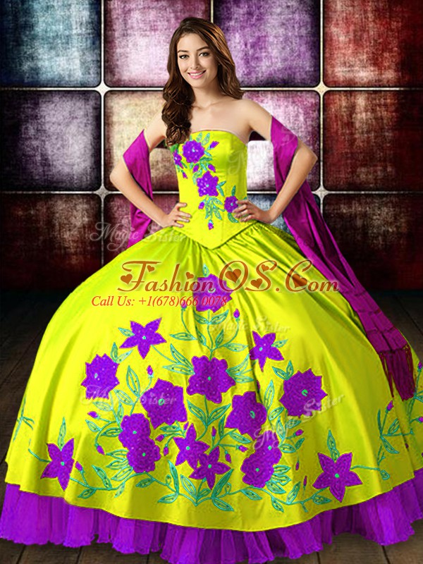 Wonderful Embroidery Quinceanera Dresses Yellow Green Lace Up Sleeveless Floor Length